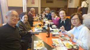 歩いて15分のところにある天保元年創業の蕎麦屋「川瀬屋」で、刺身,天ぷら、お蕎麦の昼食を楽しみました。ゆったりとした個室を予約できたため、限られた時間でしたが参加された皆様からご挨拶をいただき、親交を暖めることができました。